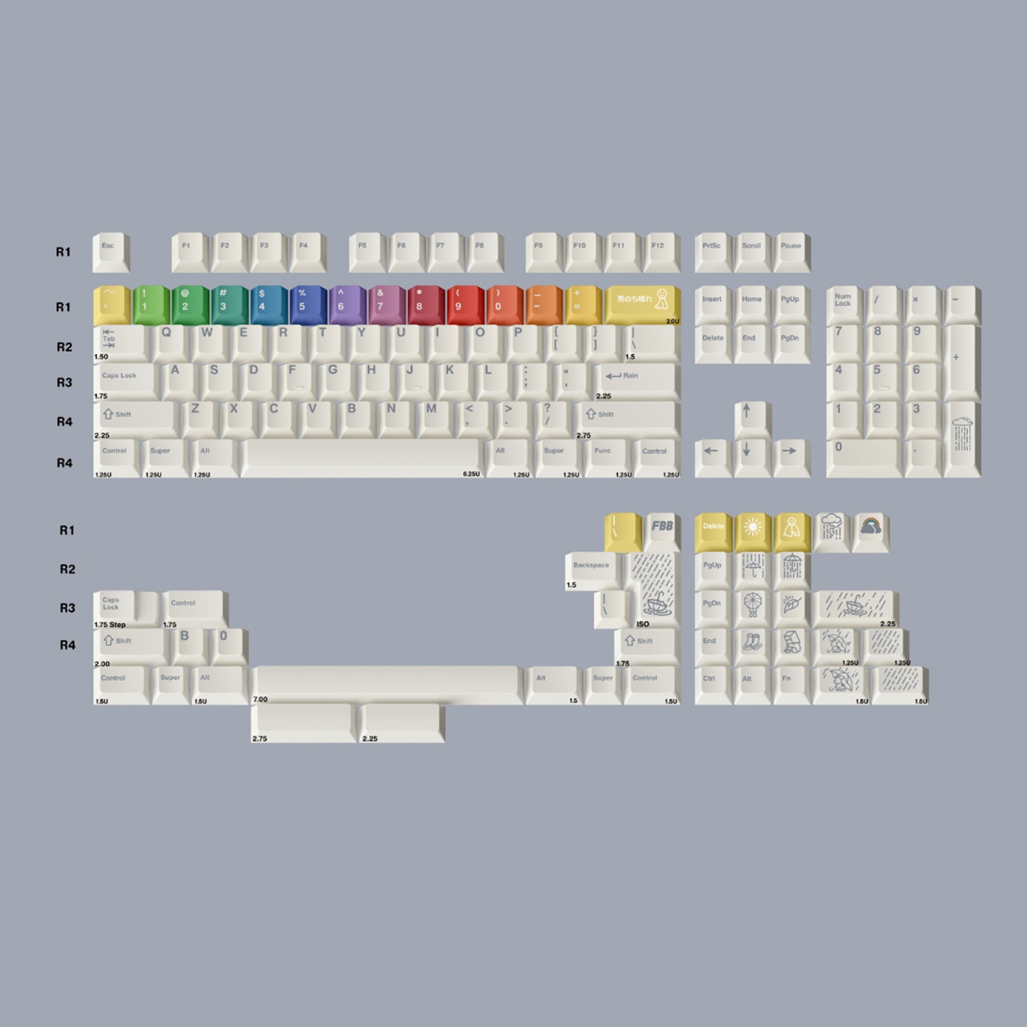 After the Rain R2 Cherry profile Keycaps is backordered and will ship as soon as it is back in stock.