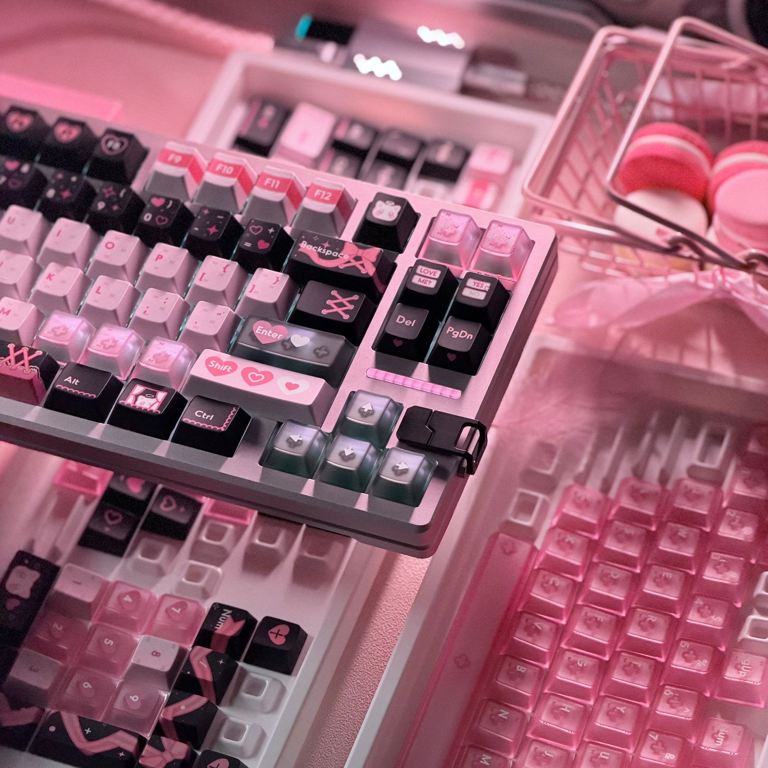Craftsmanship: PBT with pearlescent texture and dye-sublimation + PC in skin-friendly frosted pink translucency.