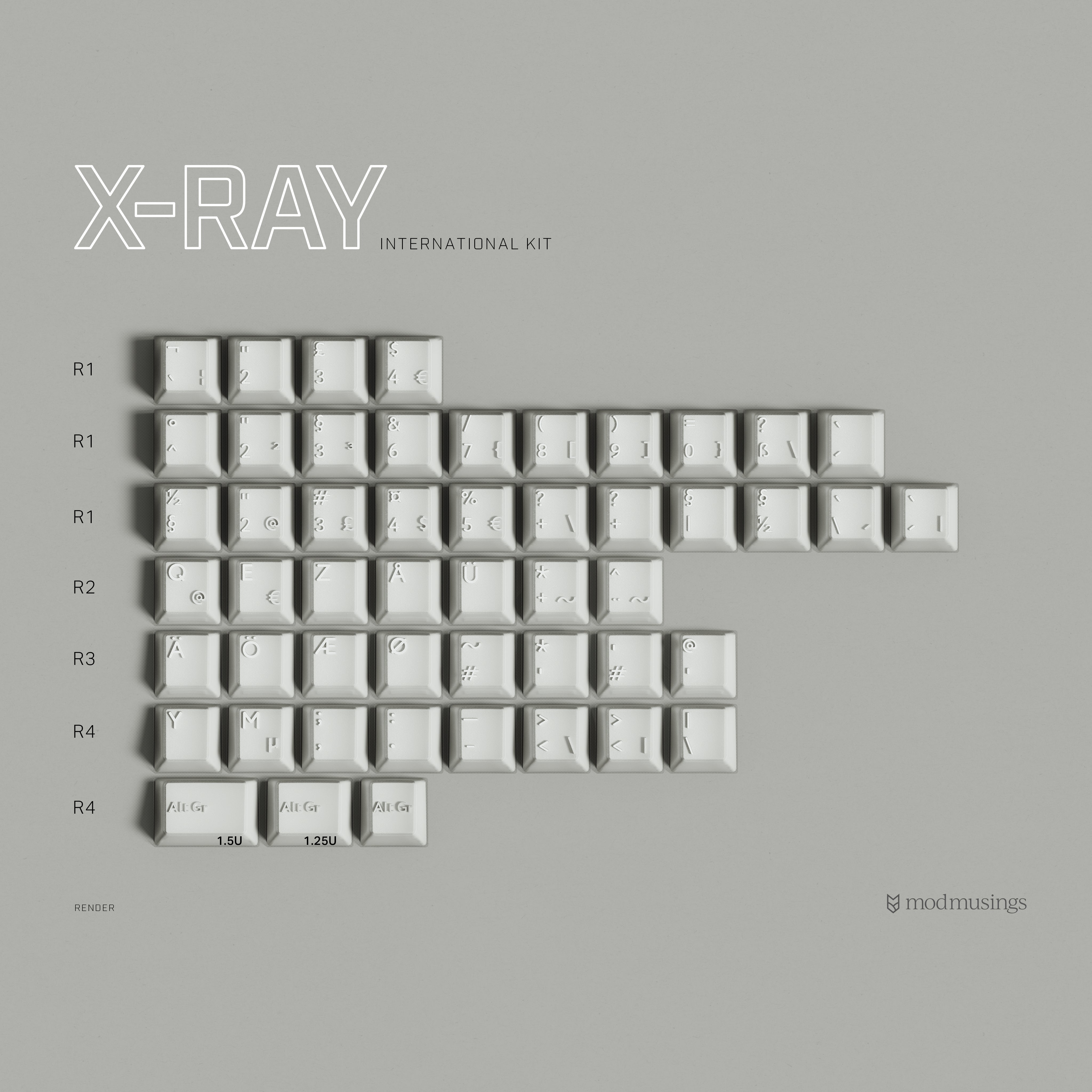 X-Ray is a keycap set that features a clear and white, low-contrast design, paying tribute to transparent tech peripherals. Inspired by these devices, these translucent keycaps highlight the internal structures and construction properties that define them.